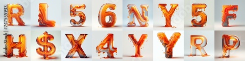 Orange glass 3D Lettering Typeface. AI generated illustration