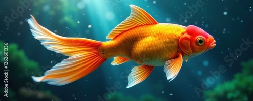 Orange goldfish, flowing paint, dynamic underwater scene, nature, flow