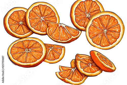 Orange isolated set. Collection of ripe juicy orange slices in water drops on a white background PNG.AI GENERATED