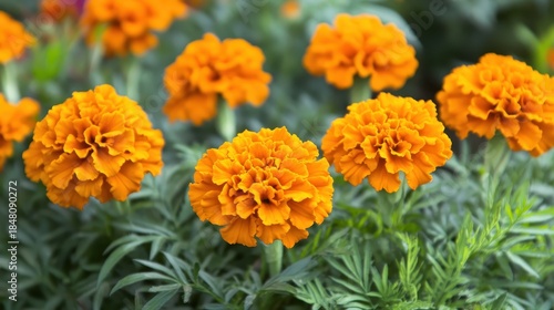 Orange Marigold Flowers Blooming Among Green Foliage Outdoors