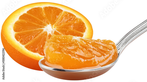 Orange marmalade on a spoon on a transparent background. isolated background.