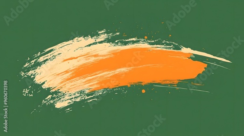 Orange Paint Stroke on Green Background, Abstract Image, Texture, Pattern, Wallpaper, Cover and Screen for Smartphone, PC, Laptop, 9:16 and 16:9 Format