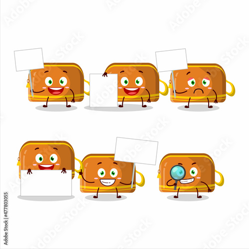 Orange pencil case cartoon character bring information board
