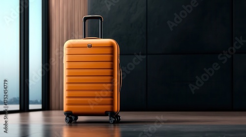 Orange Suitcase Sits on a Wood Floor Inside a Modern Building During Daytime