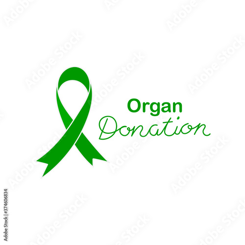 Organ donation, handwritten inscription. Green ribbon. Transplantation and awareness of organ donation. Vector template
