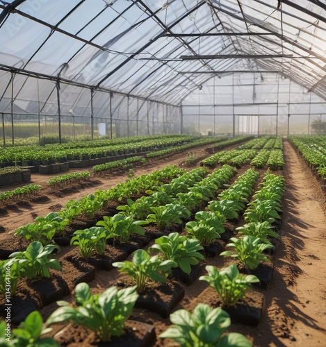 organic farming practice with greenhouses and healthy seedlings, environmentally friendly farming, greenhouses for plants, organic farming practices