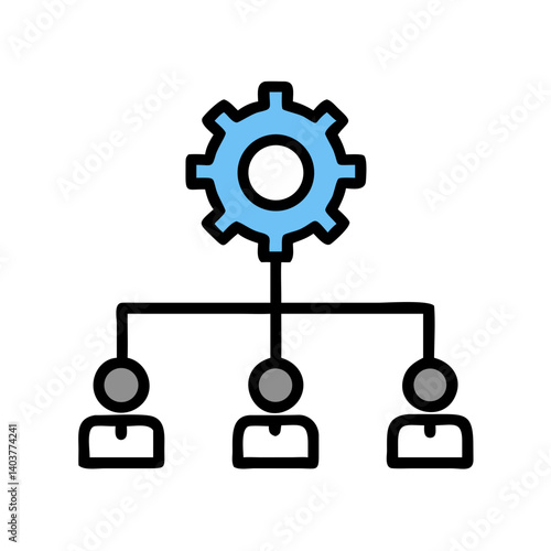 Organizational Chart with Gear Icon Representing Team Structure and Operational Management