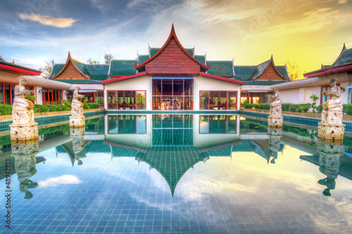 Oriental style architecture in Thailand at sunrise