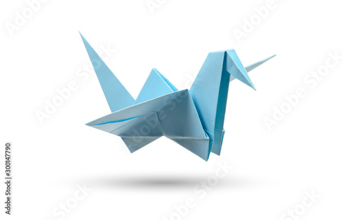 Origami flying bird isolated with clipping path. Japanese folded paper swan