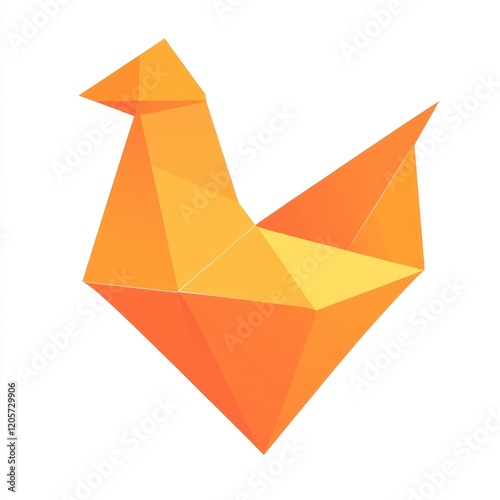 Origami rooster, geometric design, white background, craft illustration