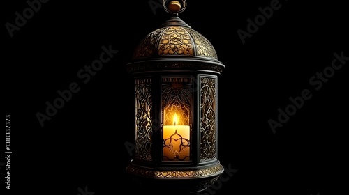 Ornamental Arabic lantern with burning candle