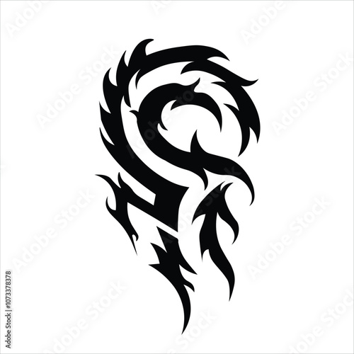 Ornamental Floral Design A classic black and white floral design element featuring elegant, curved leaves and intricate detailing. Perfect for use in decorative borders, logos