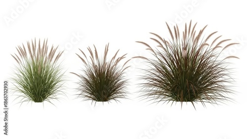 Ornamental Grasses Isolated on White Lush Green and Brown Plants