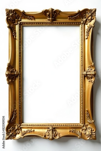 Ornate antique gold picture frame, isolated on white , antique, reflection, vintage