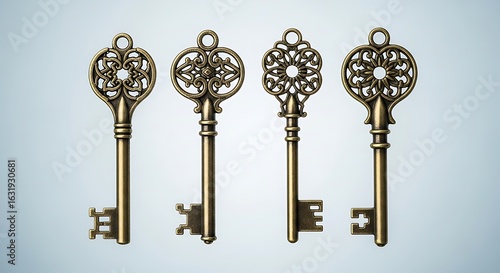 Ornate antique-style keys against a plain background.