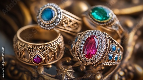 Ornate Gemstone Rings: A Luxurious Antique Jewelery Display