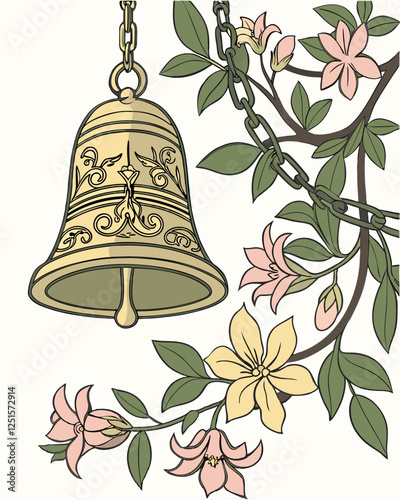 Ornate Golden Bell with Floral Decor and Elegant Vines for Vintage Design Concepts.