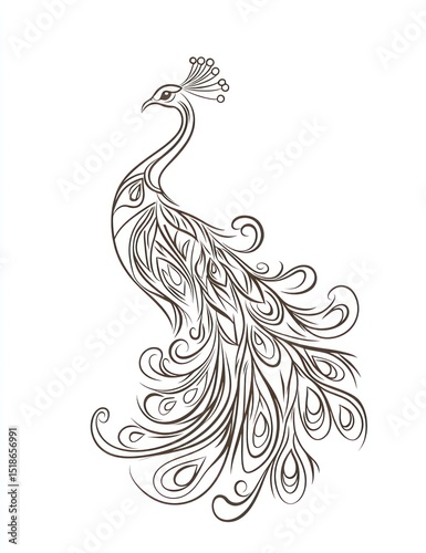 Ornate peacock line art, elegant design, use for print, web, or social media