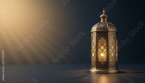 Ornate Ramadan Lantern: Golden Glow of Islamic Festivity