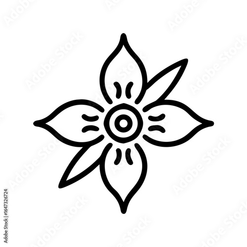 Ornate, stylized flower design in black line art.
