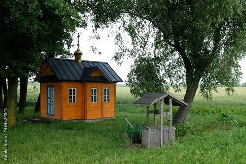 Orthodox chapel and wooden well in a place called "Petraszki" - Ryboly parish, Podlasie, Poland