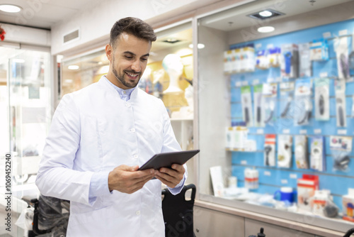 Orthopedic Store Professional Using Tablet in Supply Store