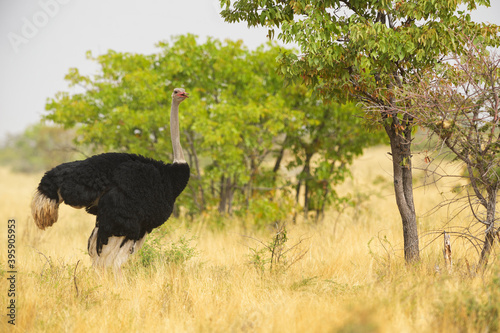 Ostrich - Struthio camelus, beautiful large bird from African savannas and bushes, Etosha National Park, Namibia.