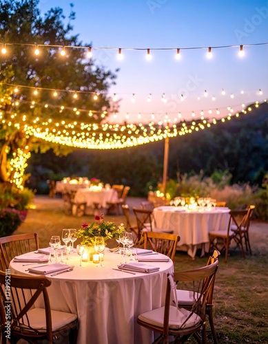 Outdoor garden party at sunset