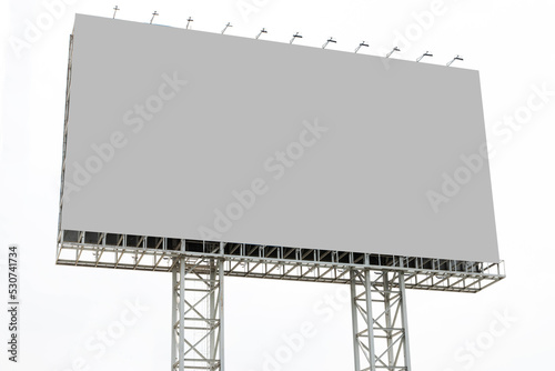 Outdoor pole billboard with mock up gray screen on white background