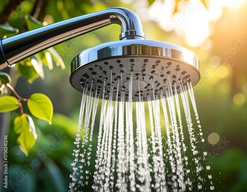 Outdoor shower head spraying water