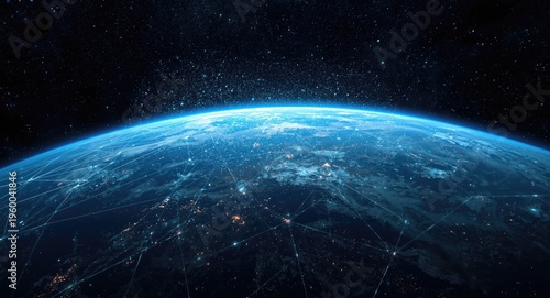 Outer space view of Earth surrounded by a network of AI generated data