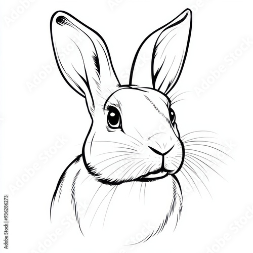 Outline illustration of a black and white bunny for drawing and coloring on white background