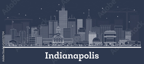 Outline Indianapolis Indiana City Skyline with White Buildings.