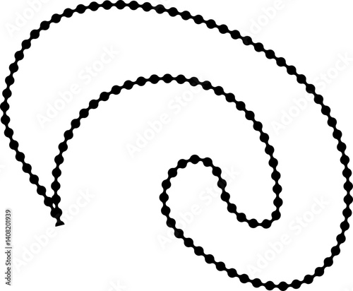 Outline of a drop-like form combined with swirling curves traced by black dotted links.