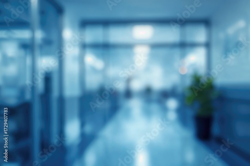Out-of-Focus Workplace Setting, Contemporary Corporate Space, Medical Facility Corridor Design