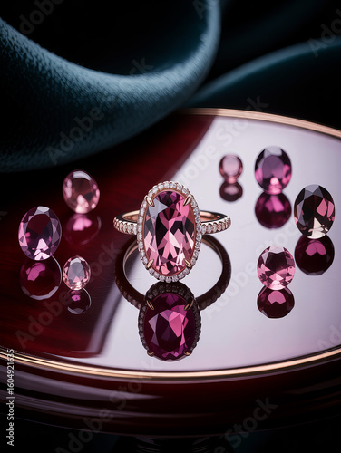 Oval pink gemstone ring with scattered pink gems oval cut