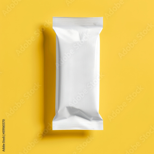 Overhead flat lay view of energy protein bar or chocolate bar snack packaging template design