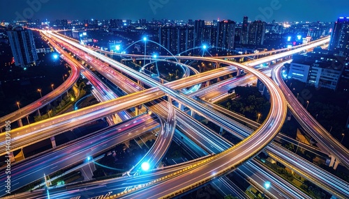 Overpass at Night with Cityscape
