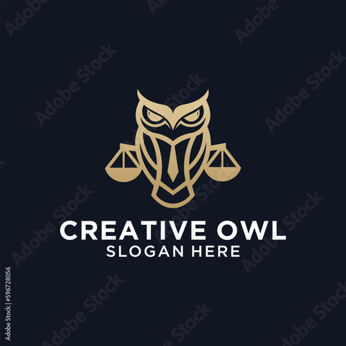 owl law design using line concept, court pillar and business logo