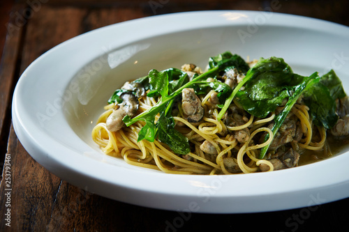 Oyster and spinach spaghetti