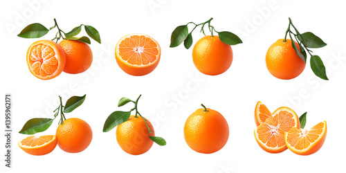 Pack Tangerine Fruit Set in Different Poses on Transparent Background for Food, Healthy, and Agriculture-Themed Designs