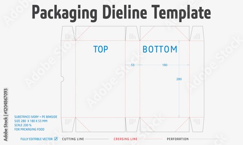 Packaging Dieline Template. 2D Technical Drawing File Eps Scale. Fully editable vector. Prepared for production