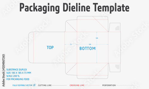 Packaging Dieline Template. 2D Technical Drawing File Eps Scale. Fully editable vector. Prepared for production