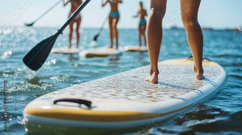 Paddleboarding Fun on a Vibrant Lake with Friends