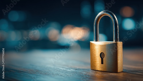Padlock on wood table security concept