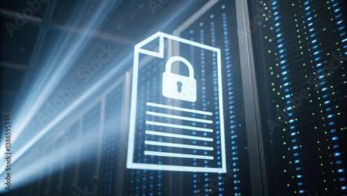 Padlock symbolizing security on a server background illustrating digital data protection and safety