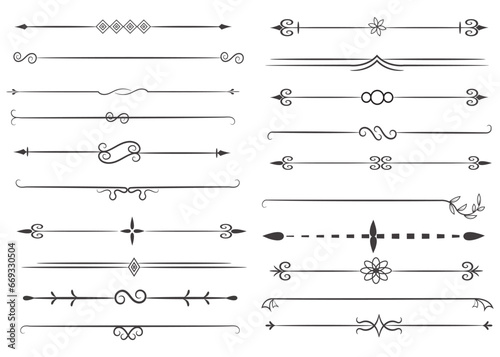Page Divider And Design Elements. Set of Various Simple Black Divider Design, Assorted Divider Collection Template Vector. Collection of floral dividers elements mega decoration for Calligraphy.