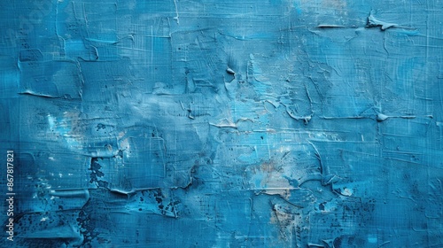 Painted Wall: Unfinished Blue Background with Abstract Grunge Texture