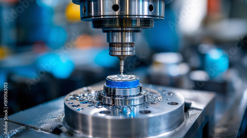 Painting metal part in production process, industrial coating, manufacturing finishing, surface treatment, factory operations, defocused workshop, with copy space