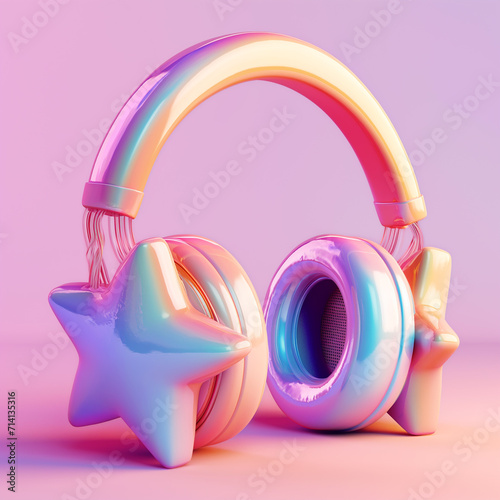Pair of colorful headphones with stars on them.